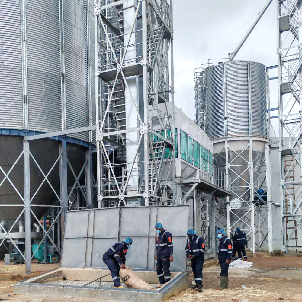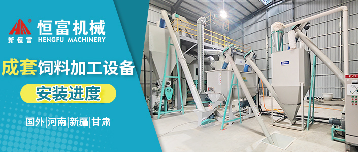 成套饲料加工设备安装进度的有:安装完成的国外320型颗粒饲料机组;正在安装的四川时产5吨预混料机组、...